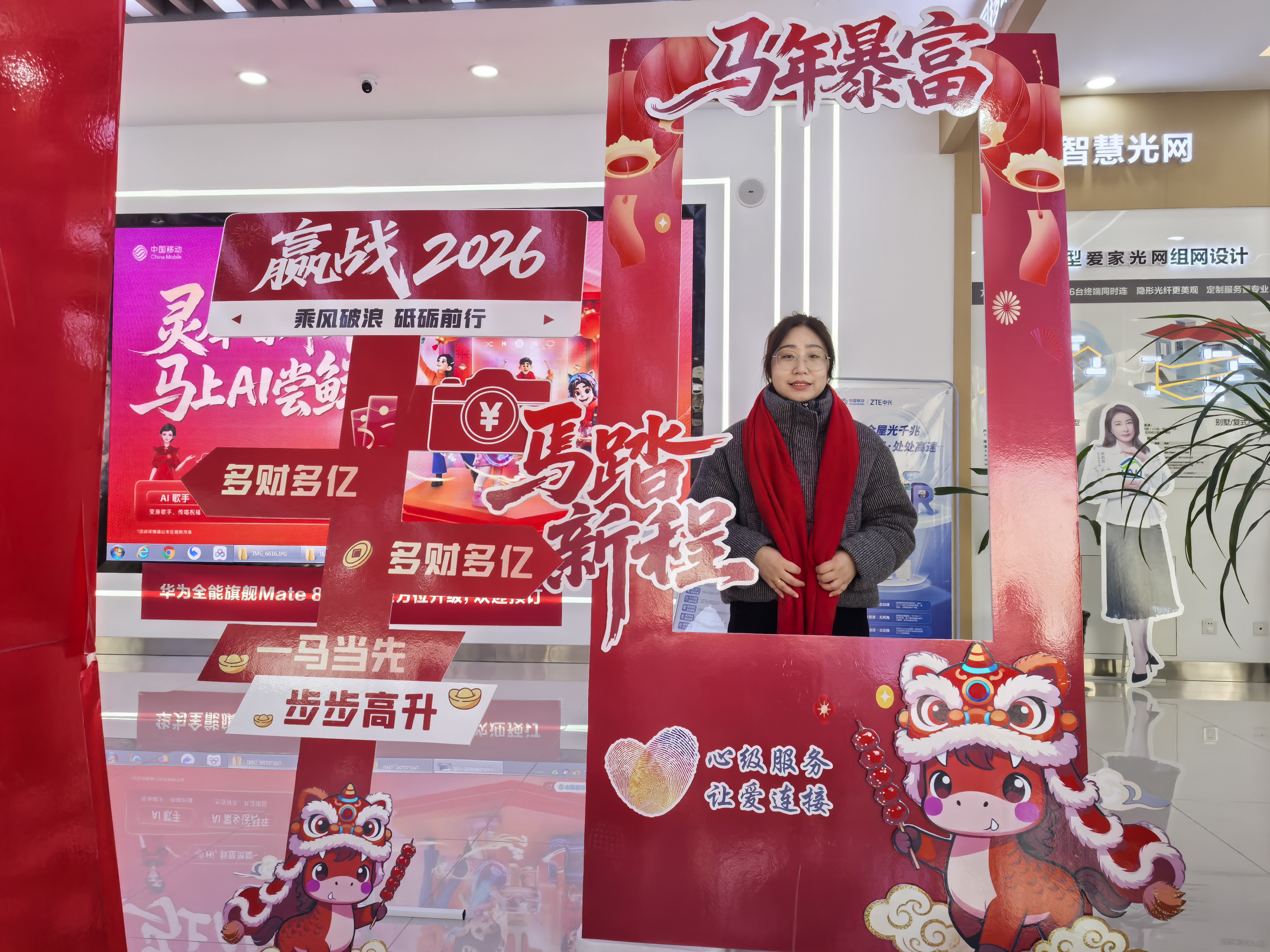 齐河齐晏大街、武城振华街、宁津正阳路等旗舰厅则推出了“龙马精神,定格新春”主题打卡活动。营业厅内特别设计了马年主题打卡框,色彩鲜艳,造型别致,充满了新春的朝气与活力。工作人员热情引导到厅客户在打卡框前拍照留念,用镜头捕捉下这份新春的精彩瞬间,记录下自己精神焕发的模样,让美好记忆得以永久留存。