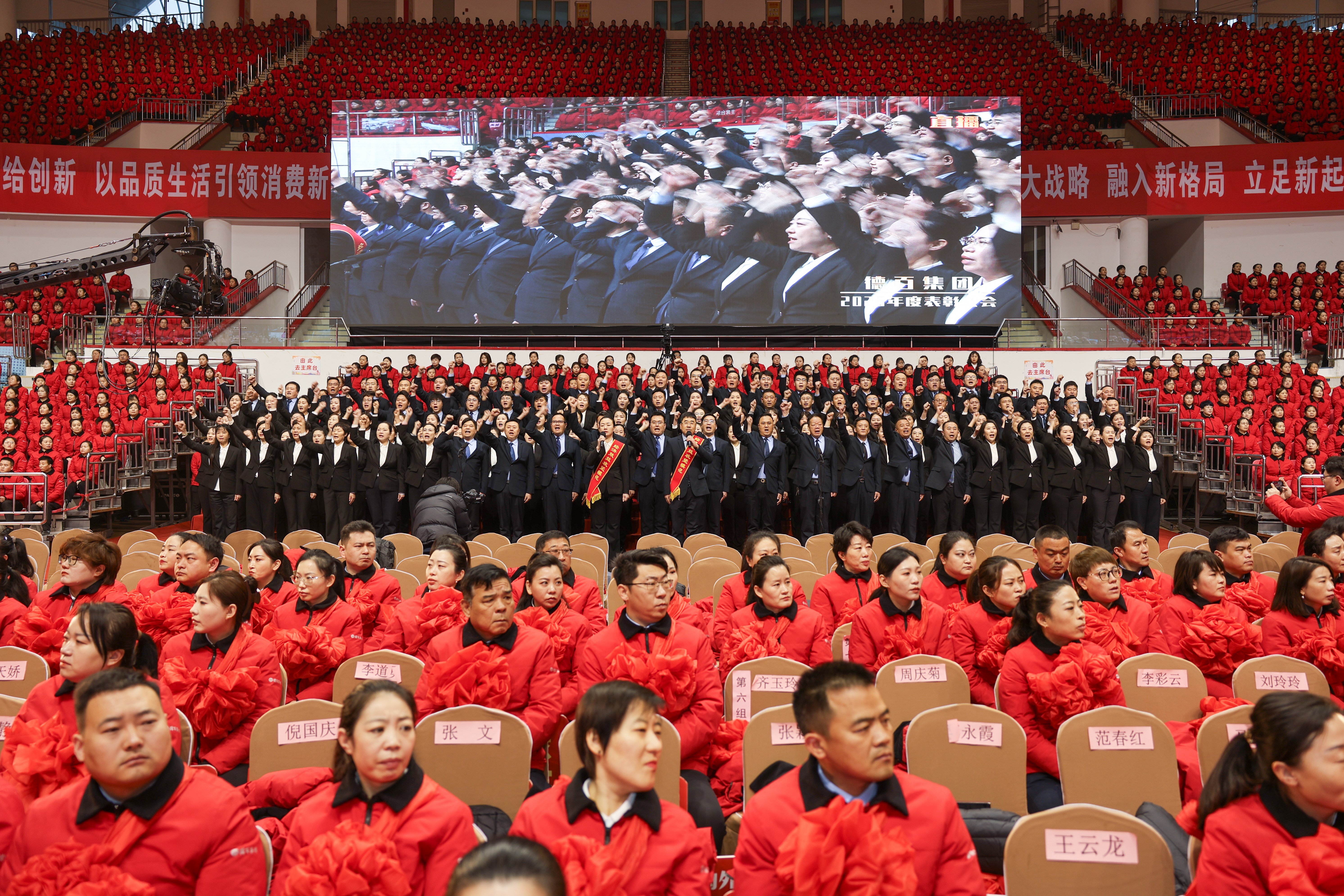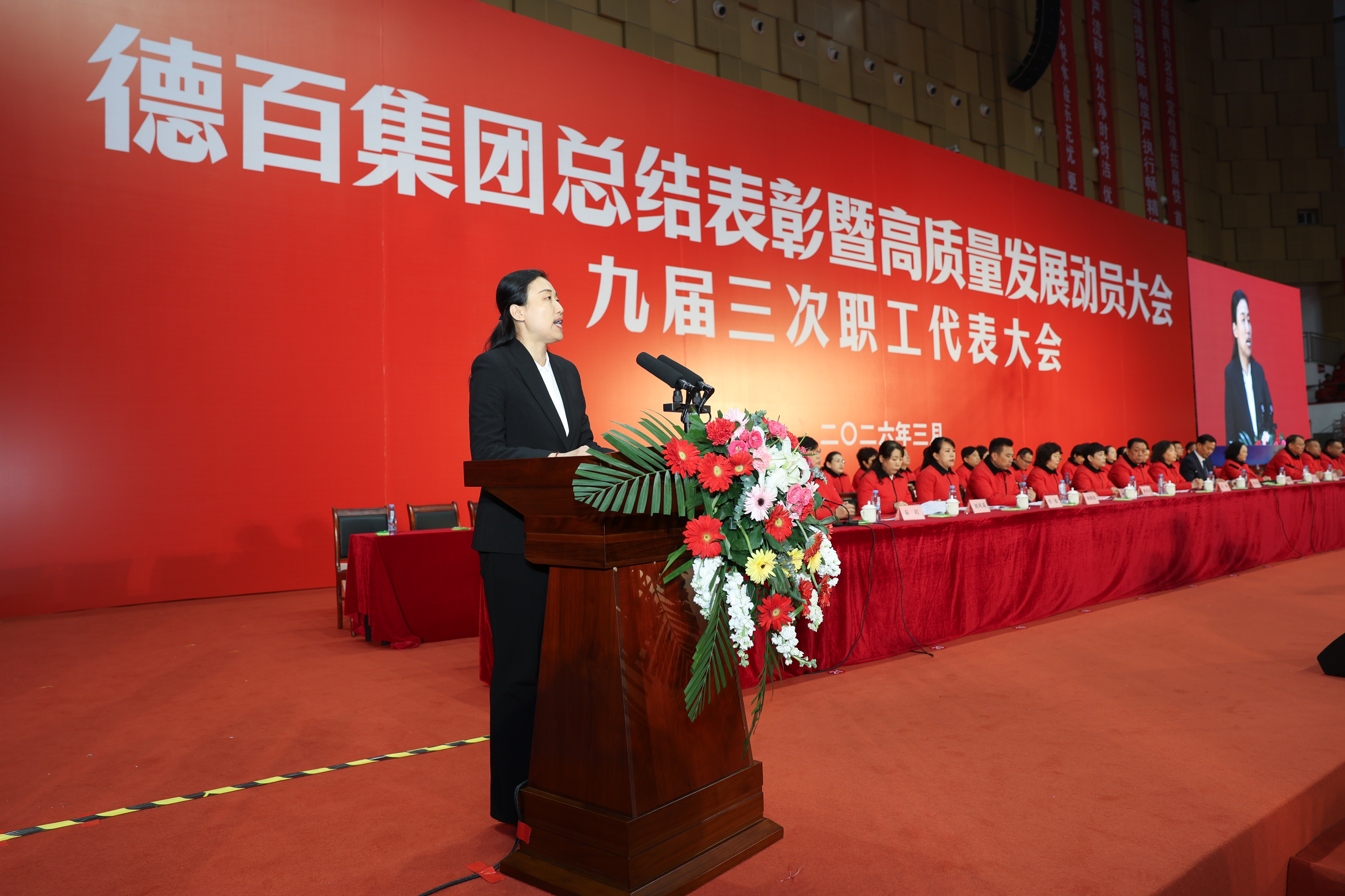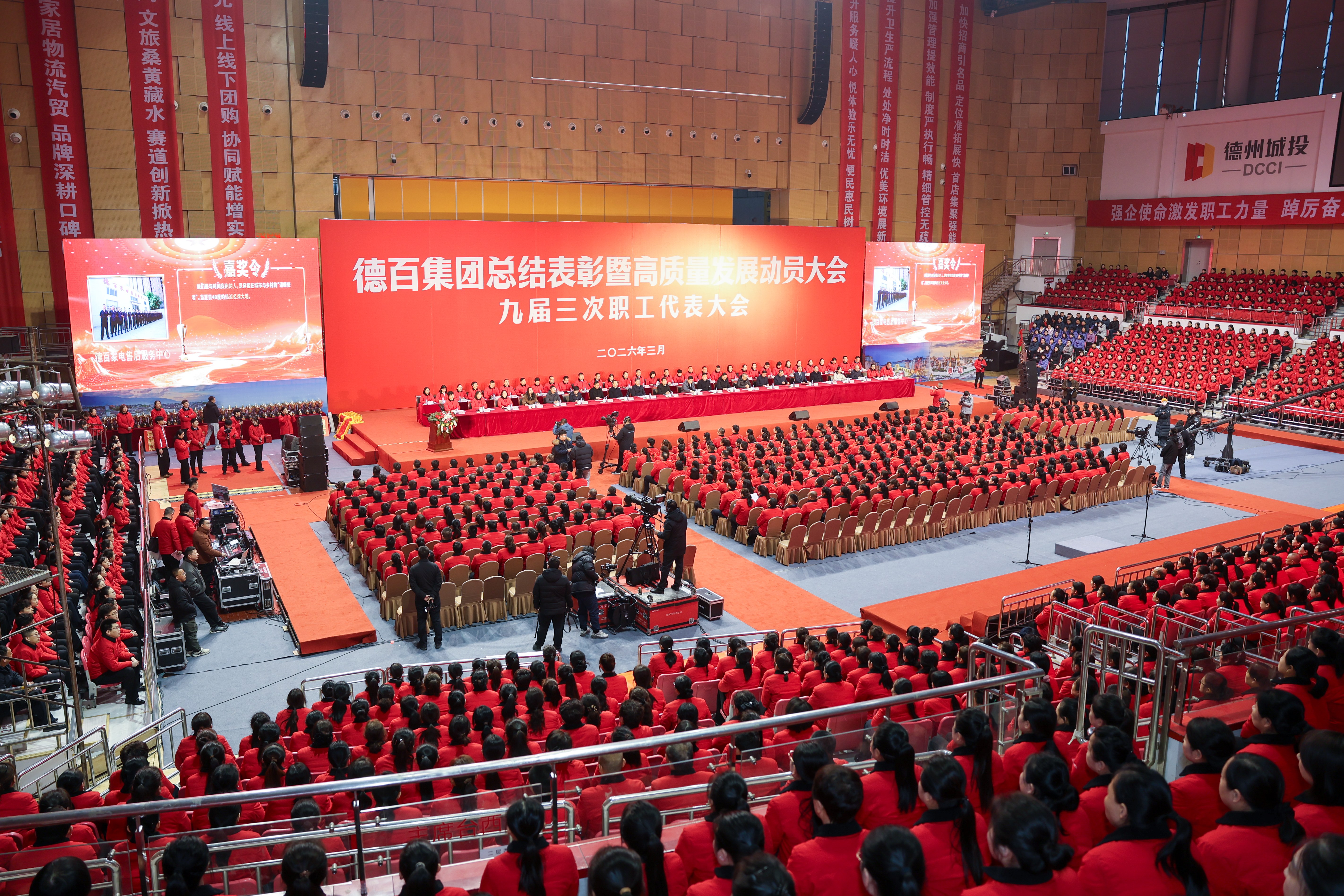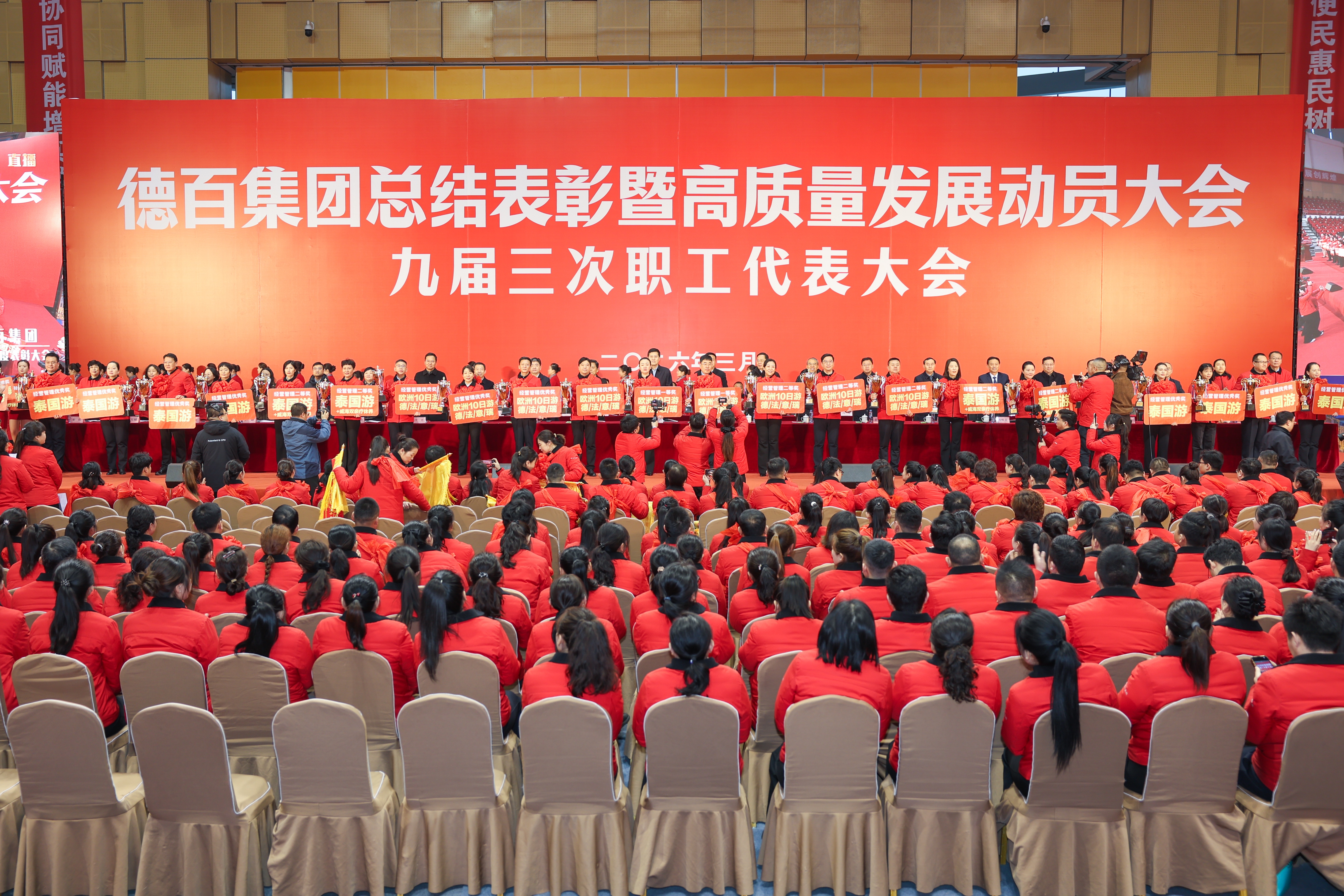 春潮涌动,万物竞发。3月5日上午,德州市体育中心体育馆内红潮涌动、群情振奋,德百集团2025年度总结表彰暨2026年高质量发展动员大会在此隆重举行。大会主会场有来自德百各下属单位的优秀员工代表5000余人,同时万余德百员工及员工亲属、厂家客户通过德百党群天地视频号、德百文旅购抖音号一同线上观看大会。