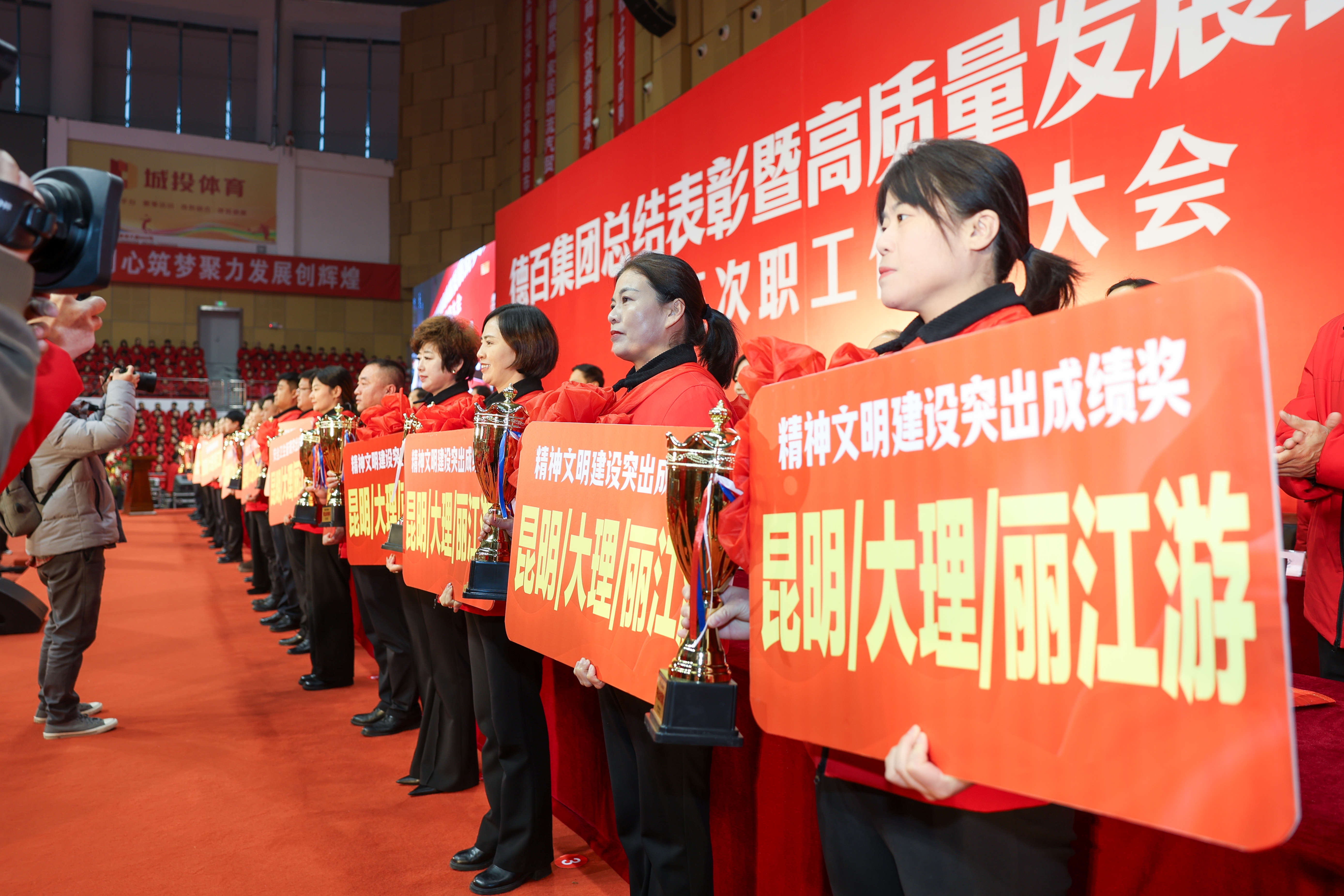 团队风采展示环节将现场气氛推向高潮。经济效益攻坚团队、优质服务标杆团队、经营管理部门团队、商旅文体多业态发展团队及各下属单位门店团队、劳模青年团队依次登台亮相。各团队以饱满的热情、昂扬的斗志,彰显了德百上下同心、众志成城的强大凝聚力,赢得现场阵阵喝彩。